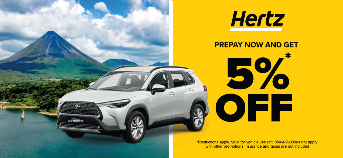 For this reason, Hertz Costa Rica wants you to enjoy the trip, giving you a 5% discount on prepaid rentals.
